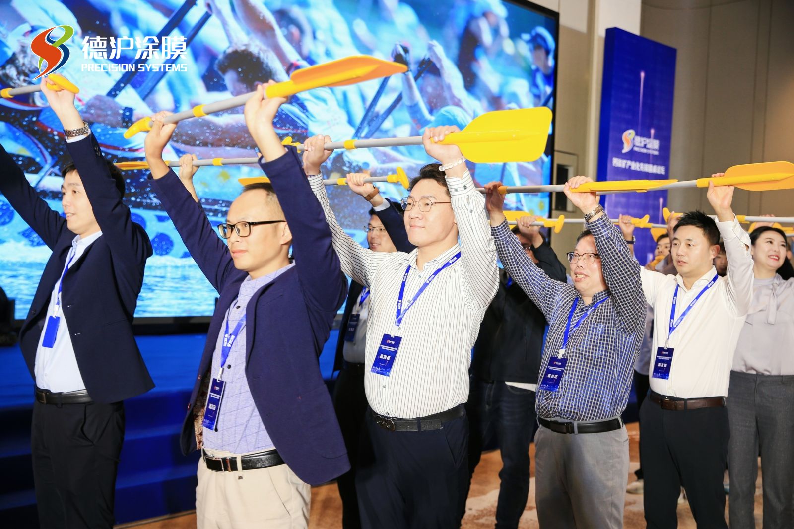 今年論壇的特色部分是增設了“青年才俊向大咖致敬“環節,德滬精選了八位平時工作中表現優異的青年骨干,向八位演講大咖敬贈”鈣鈦礦司令官“的帽子, 并單獨合影留念。