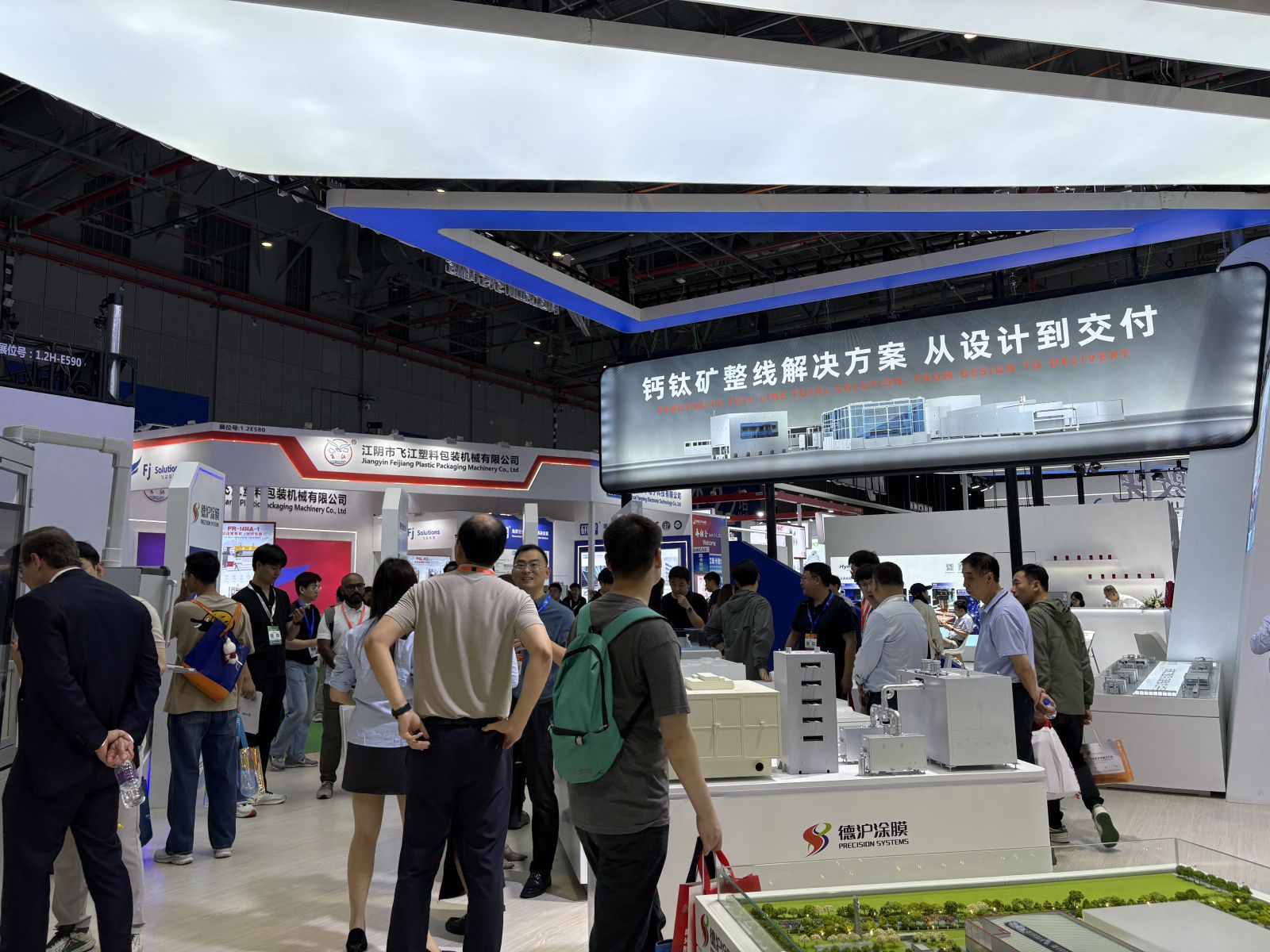 為增強觀眾體驗,德滬特別設(shè)置了“疊層涂布真機展示區(qū)”、“鈣鈦礦研究院整線展示區(qū)”、“核心三件套展示區(qū)”、“鈣鈦礦組件展示區(qū)”以及“德滬整線合作伙伴展示區(qū)”,吸引大量專業(yè)觀眾駐足聆聽或深入探討特定技術(shù)問題。由于客戶普遍注重實用性,今年的展位討論質(zhì)量很高,普遍直入主題。